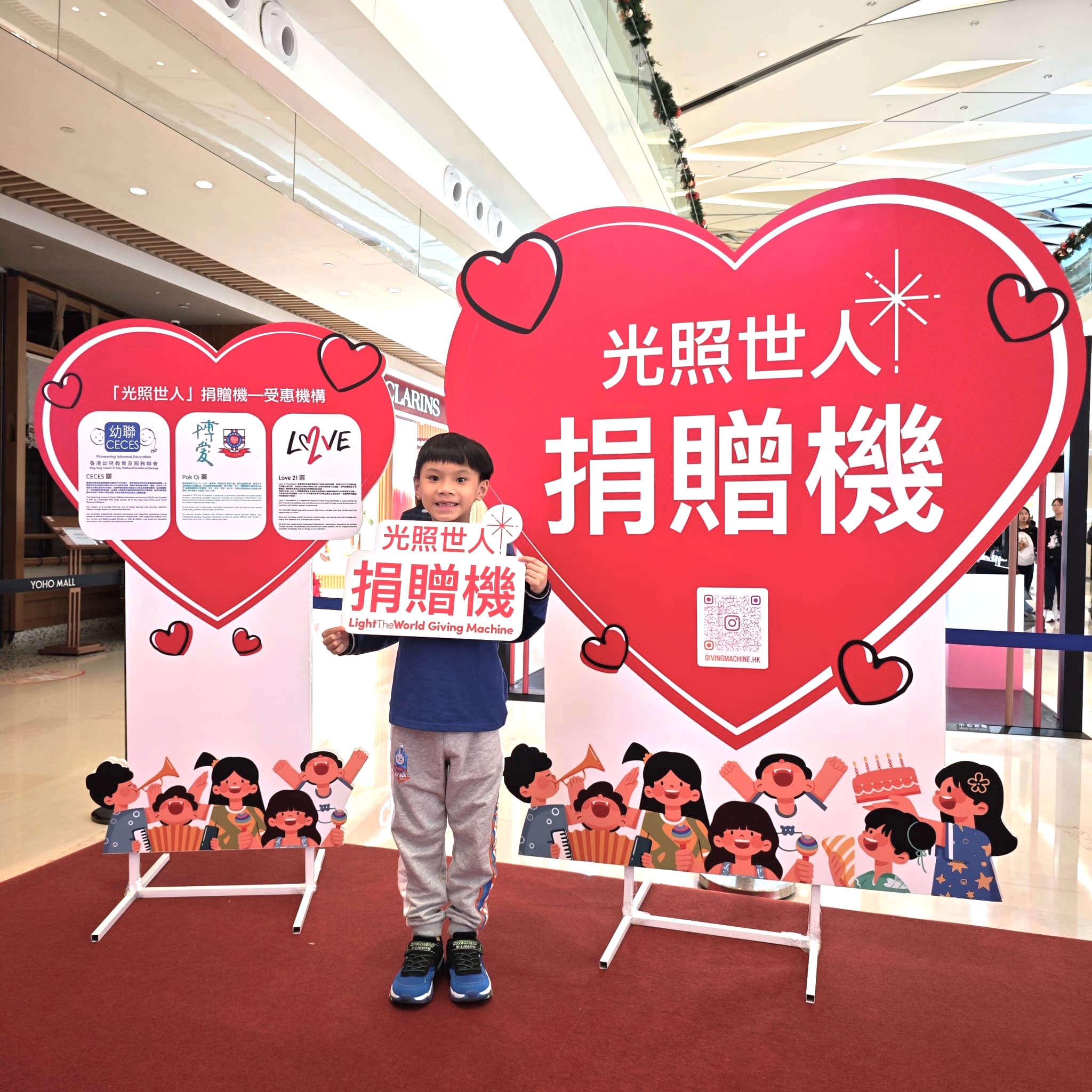 「光照世人捐贈機」今個聖誕將載譽回歸,繼續以創新的自助捐贈售賣機形式,為本地慈善機構籌募善款,並期望巿民共襄善舉,恩澤社群。今年的受惠機構包括:路向四肢傷殘人士協會、膳心連、幼聯、LOVE 21、博愛醫院 及 生命熱線。