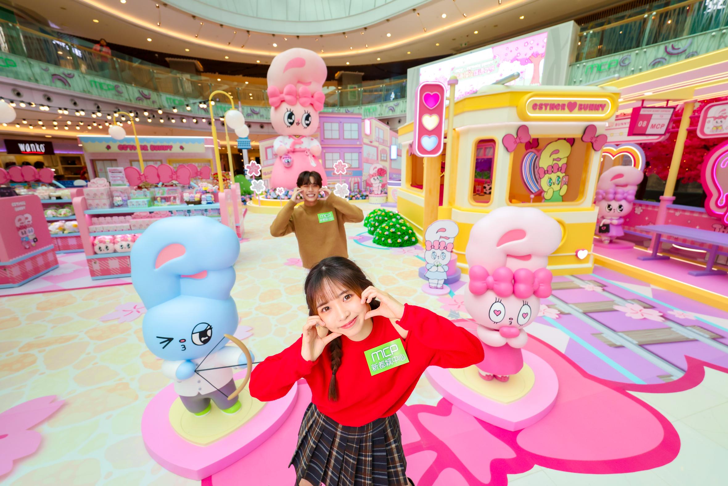 Esther Bunny 家族角色,包括:一身粉紅色戴有標誌性粉紅蝴蝶結的Ribbon Bunny;炫酷時尚的薰衣草色Lavender Bunny;奶油般純白的Cream Bunny及一身毛色粉藍的Blue Bunny,將親臨MCP新都城中心。Esther Bunny外型如棉花糖軟萌,配以一對修長大耳及帶長睫毛的閃亮眼睛,以甜美溫暖的可愛魅力,瞬間誘發你的少女心!Esther Bunny將帶大家遊遍6大打卡場景及互動玩樂區,等待MZ世代親臨解鎖更多驚喜!